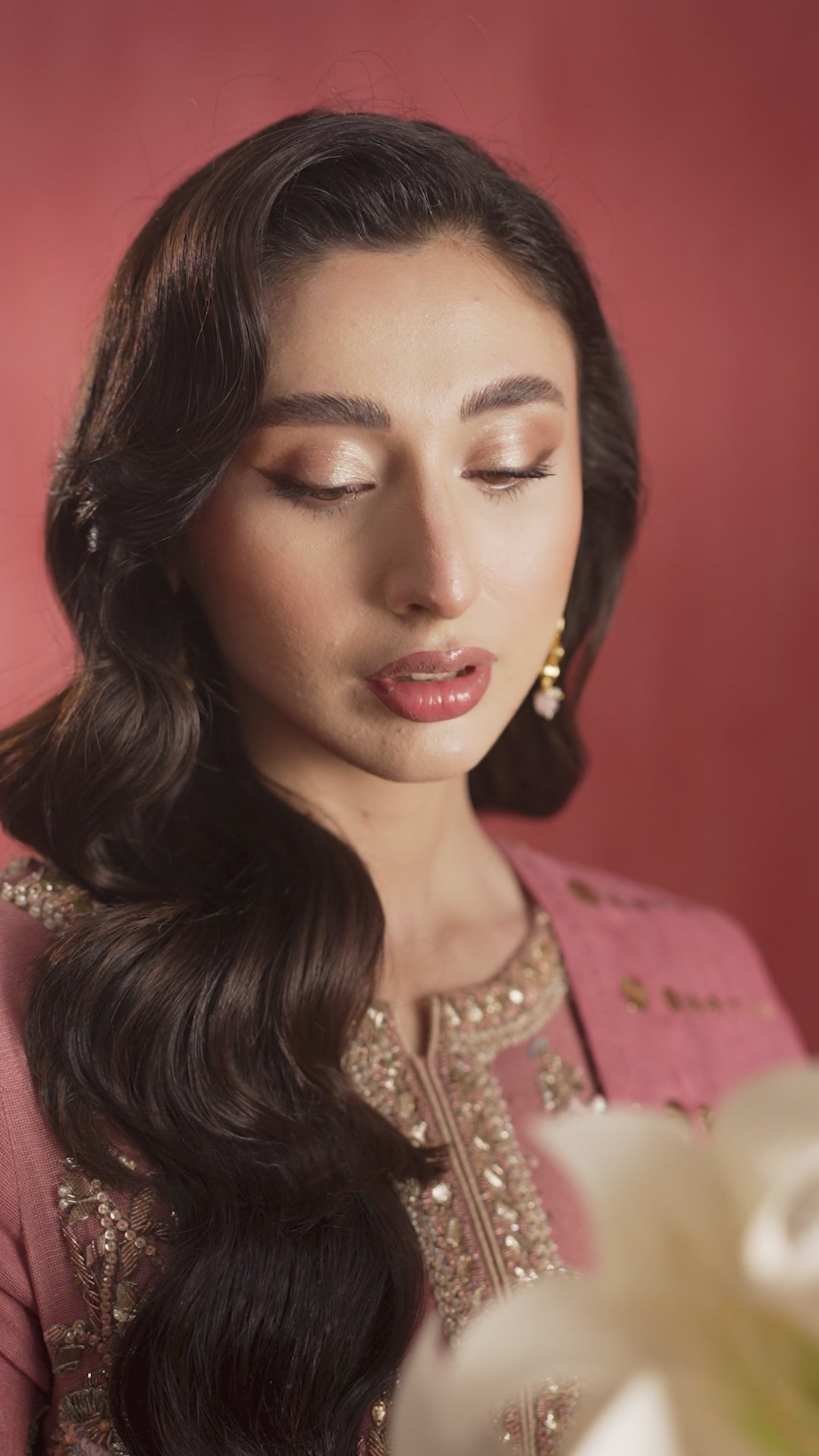 Misty Rose is a dreamy pink silhouette adorned with intricate kora, dabka, gotta, mukaish, resham, and pearls. The delicate embellishments form floral trellises and traditional motifs and tassels on back creating a stunning contrast on the glistening contain net canvas. Paired with an ethereal mukaish organza dupatta and izar pants with detailed work at the opening.